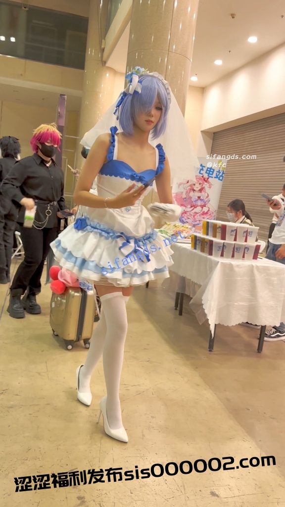 【永久专享】【KFC】顶级身材COSER蕾姆学生妹·过膝白丝婚纱短裙白内可爱【1V】【1.31G】