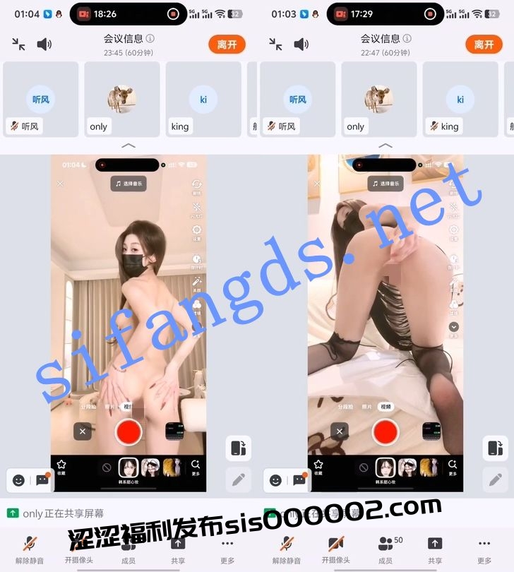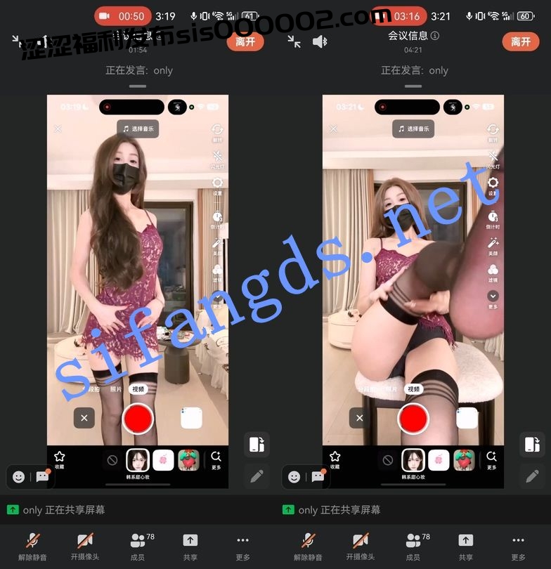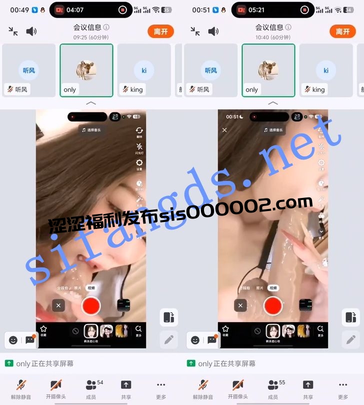 • 四场会议的录屏,妹子有部分露了脸,还是很漂亮的,身材苗条,界面问题是因为现在快手很多主播都通过类似于“画中画”的方式来躲避会议被封而且画面会有美颜效果加持,弊端就是界面会看着相对较小,不过该看到的奶和逼还是能很清晰看到。